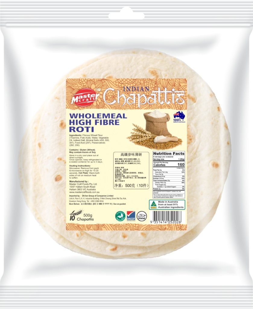 Master Craft Wholemeal HighFiber Roti 500Gm